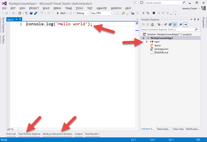 In this post, we’ll take a look at writing code for it using Visual Studio. Visual Studio, once you add the free Node.js Tools for Visual Studio plugin, happens to be pretty great at working with Node.js projects. It runs node behind the scenes, so it offer the following…
