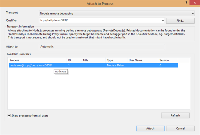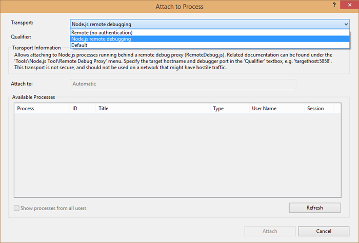 Creating a project using Node.js in Visual Studio begins like any other project type - with the File | New Project dialog…