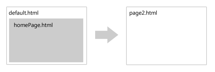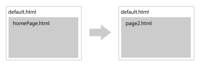 Notice that the user is still on default.html, but the contents of the second page have simply been loaded into what is called the contenthost. Now, if you loaded a bunch of script and styles on default.html and even declared some variables and set some state, you still have all of that, even though to the user it appears that you’ve navigated to a second page.