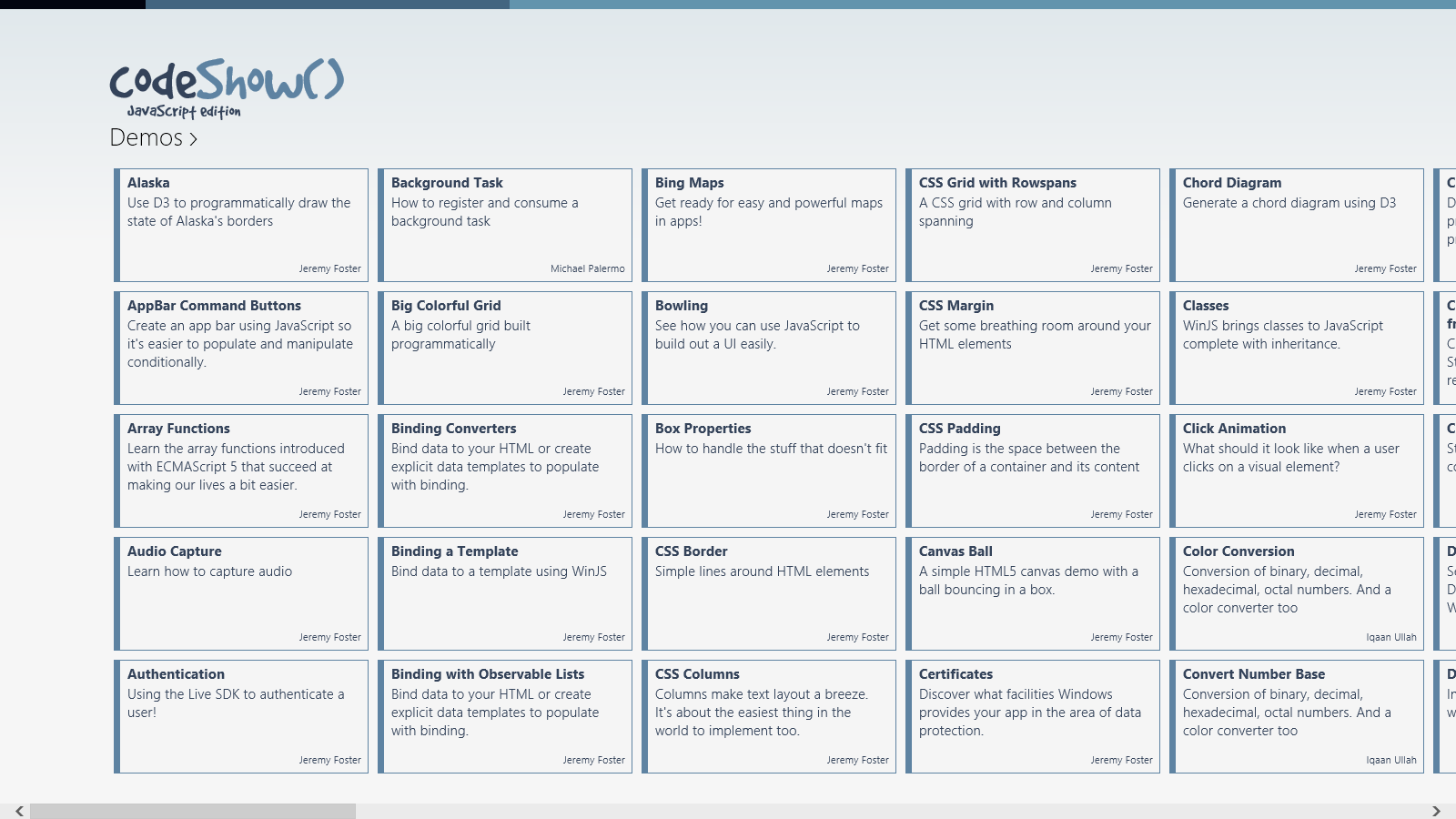 codeShow is a app for learning to make apps. It’s very meta in that way. The whole project is an open source project with community contributions. Use it to learn the web platform and Windows app development.